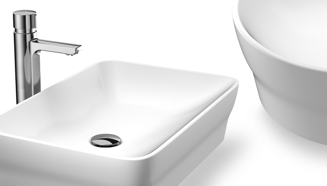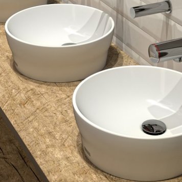 Dankzij individuele wasplaatsconcepten is het mogelijk sanitaire ruimtes een onvergetelijke uitstraling te geven. Helderheid, elegantie en harmonie in vorm en materiaal bepalen het eigentijdse design. De nieuwe opzetwastafels RONDAtop en QUADROtop van mineraalgraniet verlenen wasruimtes een exclusieve uitstraling.