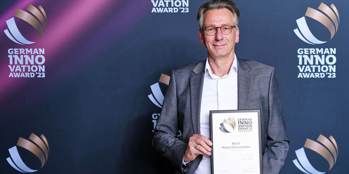 De magnetische douchehouder van HEWI heeft de German Innovation Award 2023 ontvangen in de categorie Excellence in Business to Business – Building &; Elements!