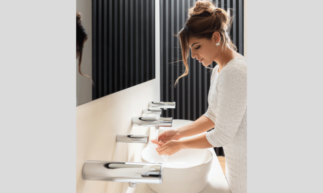 Mengkraantechnologie voor openbare en commerciële sanitaire installaties, waterbeheersystemen, uitrustingselementen van roestvrij staal en mineraal graniet, speciale producten.