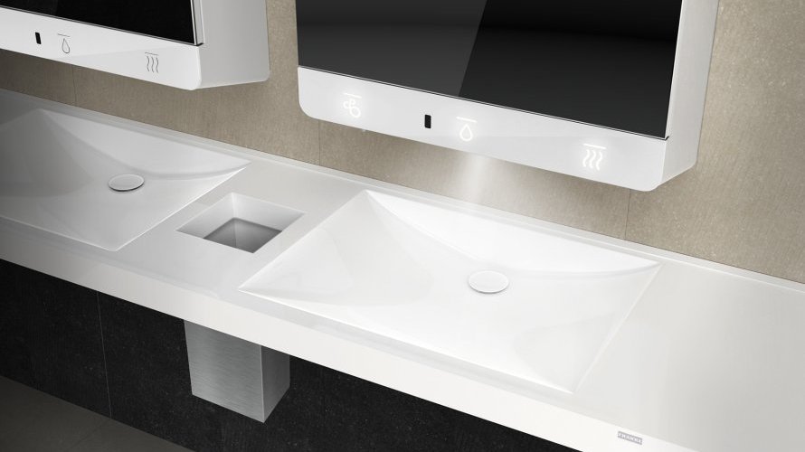 De slimme en verlichte bediening van deze wasplaats unit werkt volkomen intuïtief en contactloos voor de gebruiker. De contactloze activatie van water, zeep en warme lucht dragen bij aan een hygiënische werking.