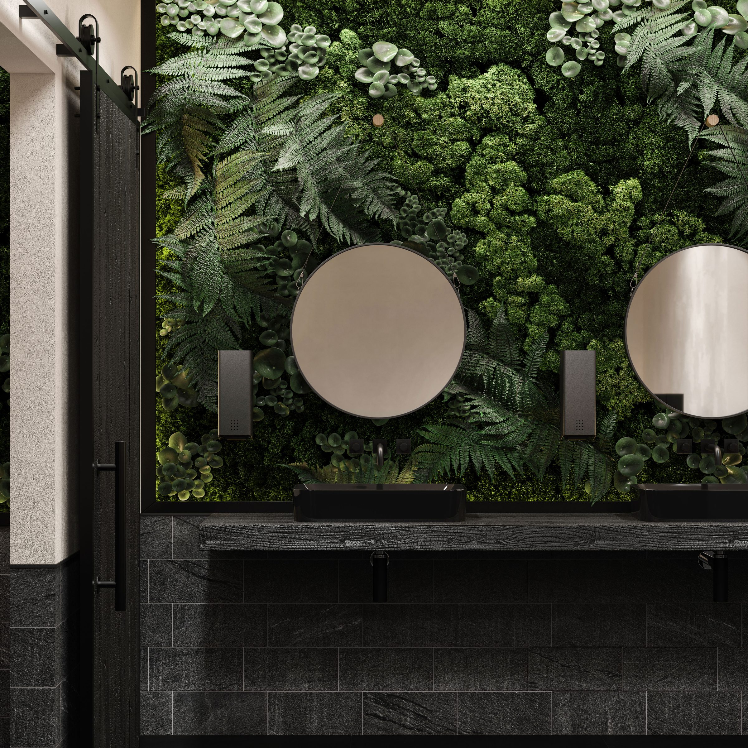 Een herinterpretatie van zwart, gekoppeld aan uitstekende eigenschappen voor semi-publieke toiletten.