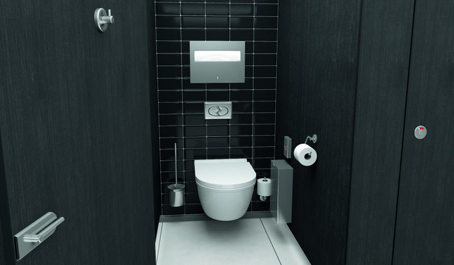 Deze reeks producten voegt gemak en stijl toe aan elk toilet of hokje. Met een eigentijdse vormgeving en gemeenschappelijke ontwerpelementen zoals gecoördineerd schroefdraad en stangdiameters. Verkrijgbaar in gesatineerd en glanzend gepolijst roestvrij staal.