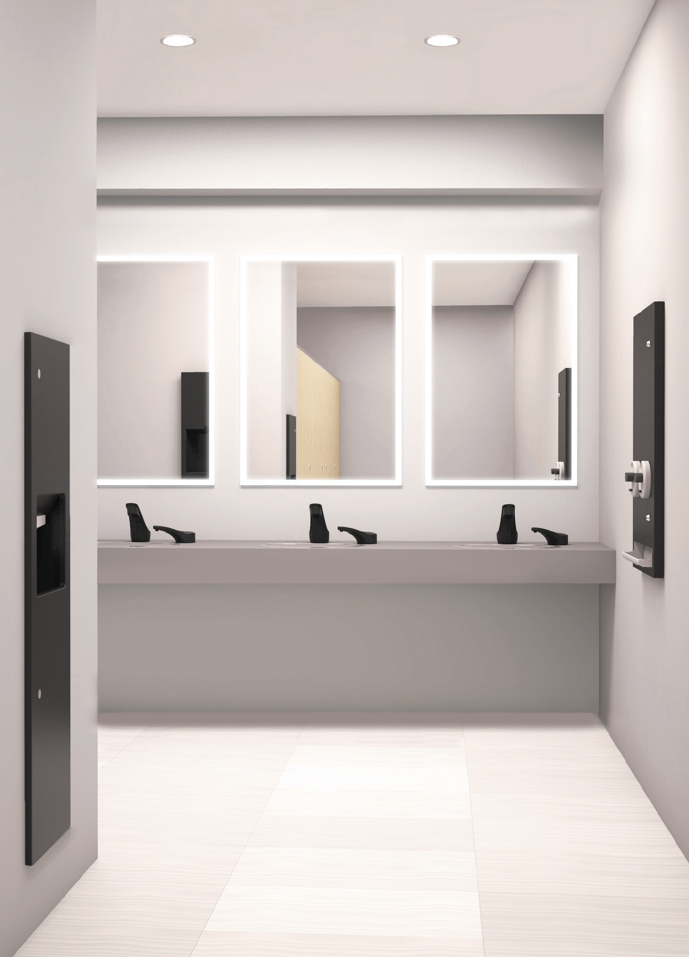 • B-3725 ADA inbouw handdroger – Eigentijds ontwerp, ADA-compliant inbouw handdroger. Droognis van 150 mm diep met een gebogen achterkant en een keramisch waterabsorberend oppervlak om water op te vangen en te verdampen. Type 304 matzwart roestvrij staal met poedercoating. De droger heeft een droogtijd van 17 seconden bij een geluidsniveau van slechts 70 dBA en een duurzaam vermogen van 1,0 kW. Gepatenteerd.