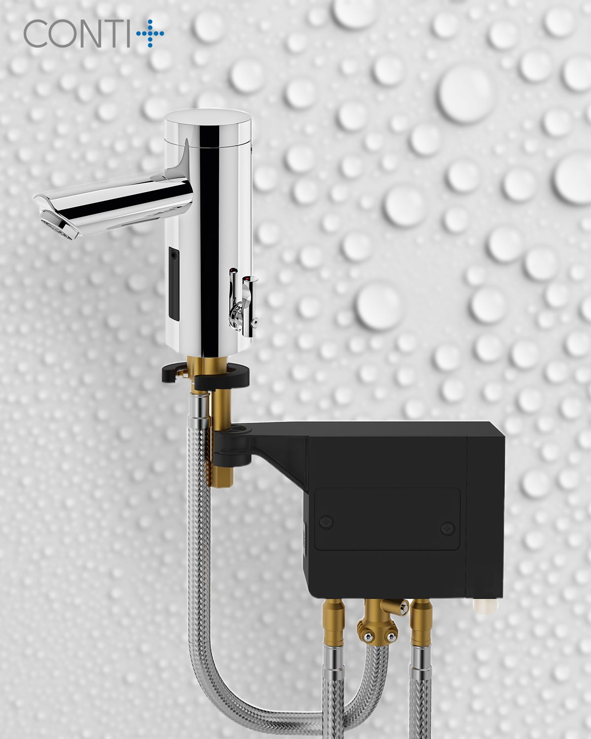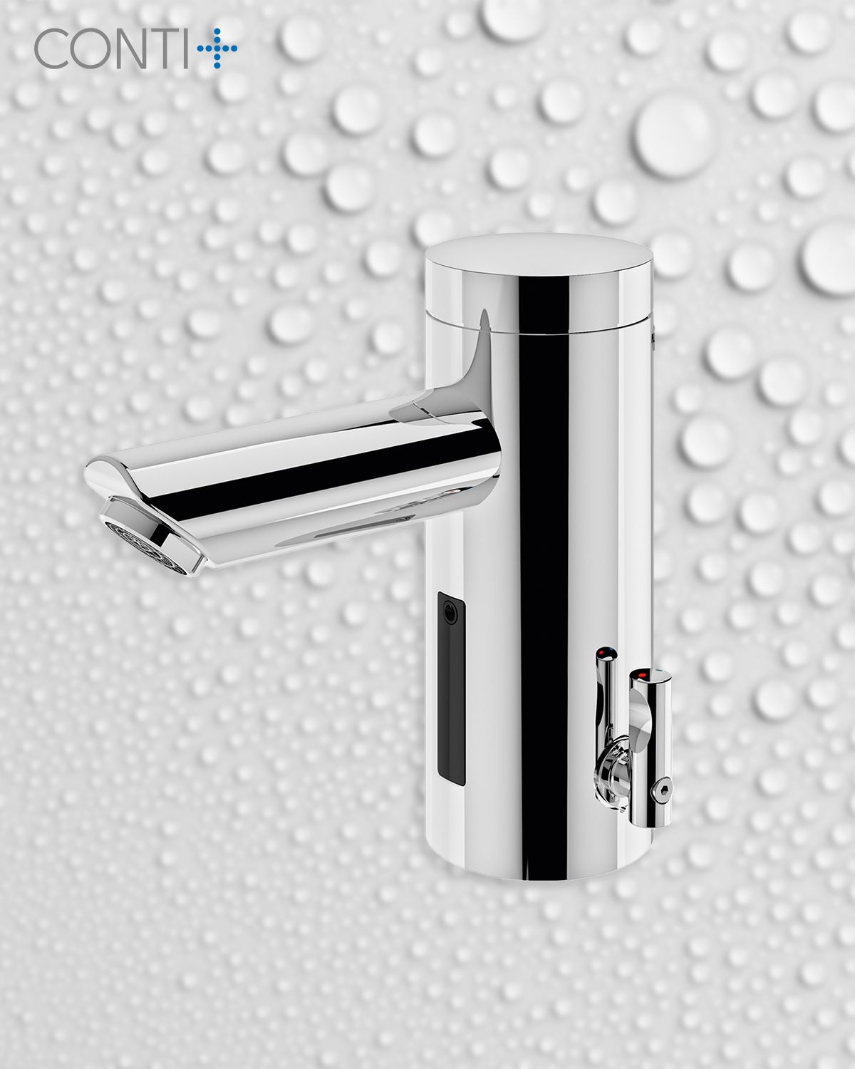 De CONTI+ lino Primus L40 wastafelkraan is uitgerust met een IR-sensor en de elektronische mengunit Thermostat-E, evenals een aparte koud waterspoeling, hygiënische spoeling en thermische desinfectie. Bediening via een service-app is ook mogelijk. Dankzij de proportionele kleptechnologie van de CONTI+ zet de CONTI+ lino PRIMUS een hygiënenorm, omdat microbiologische verontreiniging van het drinkwater vrijwel onmogelijk is.