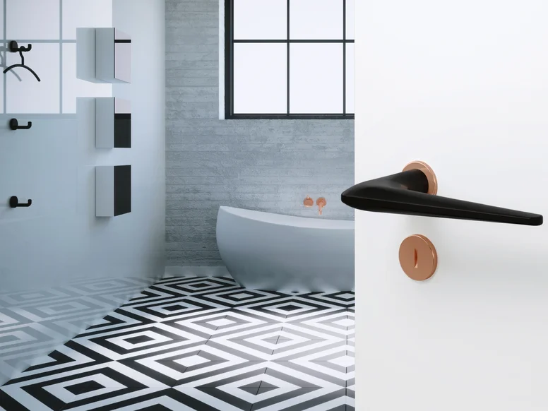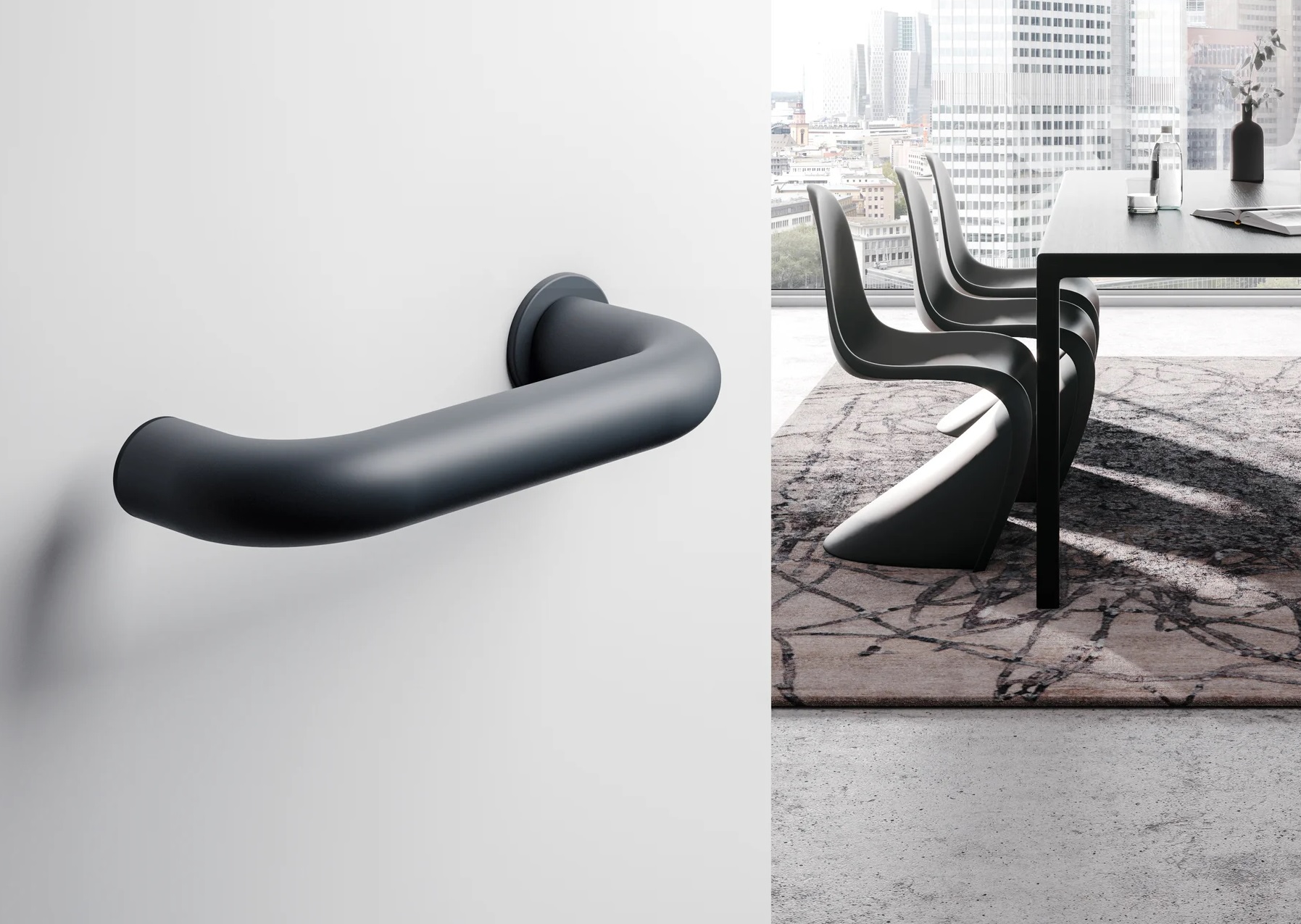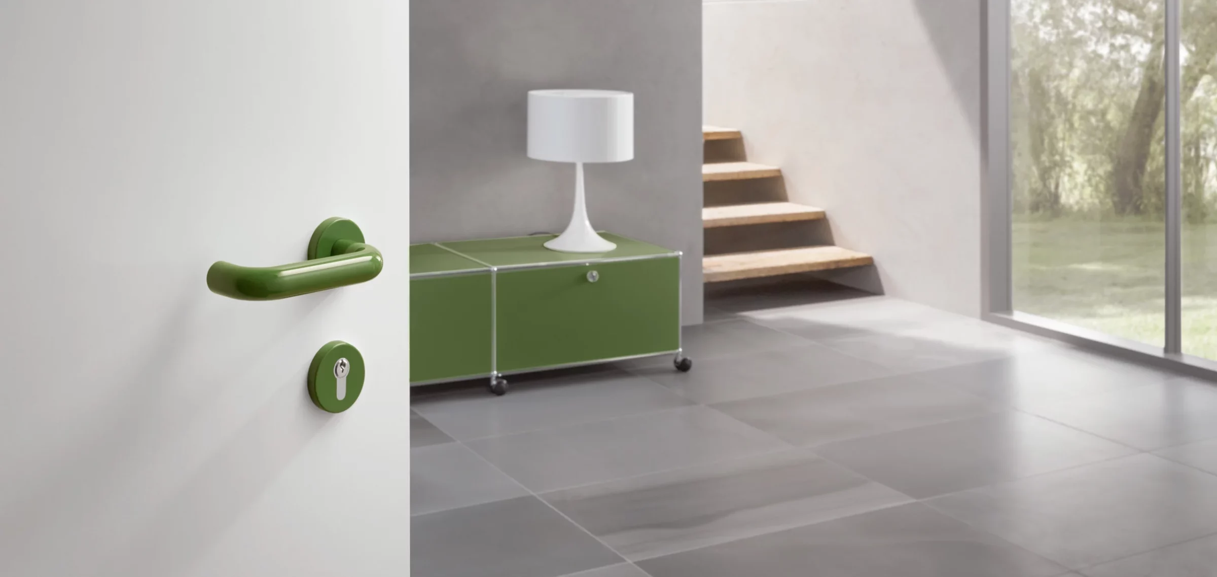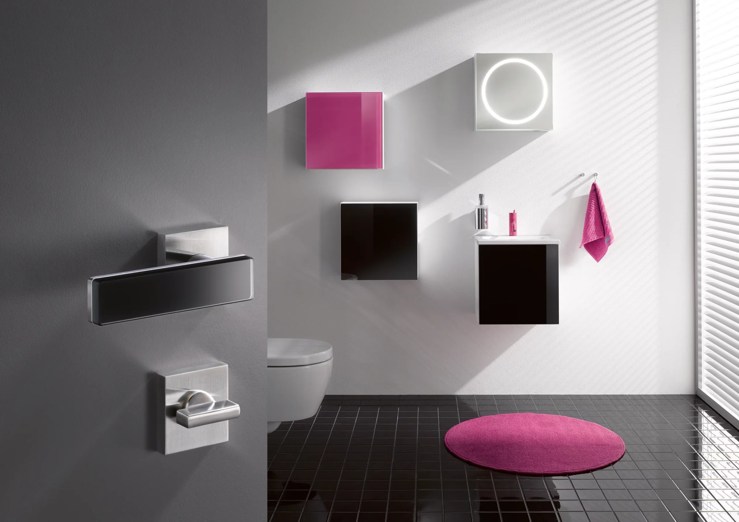 Fijn glas geeft de designvariant van de 180-serie een luxe uitstraling. Gekleurd glas wordt direct op de deurkruk van hoogwaardig roestvrij staal aangebracht. Het glaselement breekt het licht af, waardoor een dieptewerking ontstaat. Er wordt gebruik gemaakt van een speciaal veiligheidsglas – een thermisch gehard floatglas, dat wordt gekenmerkt door een extreme stoot- en breukvastheid. De glasvariant van de Serie 180 is verkrijgbaar in de kleuren wit of zwart.