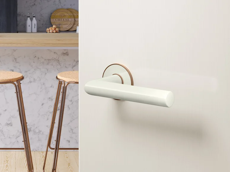 Echte materialen geven serie 180 waarde. De deurkrukken zijn gemaakt van massief roestvrij staal. Serie 180 biedt ook hendelgrepen aan waarbij het glas direct op het roestvrijstalen lichaam wordt aangebracht, zodat het lijkt te zweven op de hendelgreep. De designdeurkrukken staan voor een heldere architectuur. Het ontwerpconcept verwijst naar de basisvorm van de rechthoek. De combinatie met ronde of vierkante rozetten onderstreept de geometrische vormentaal.