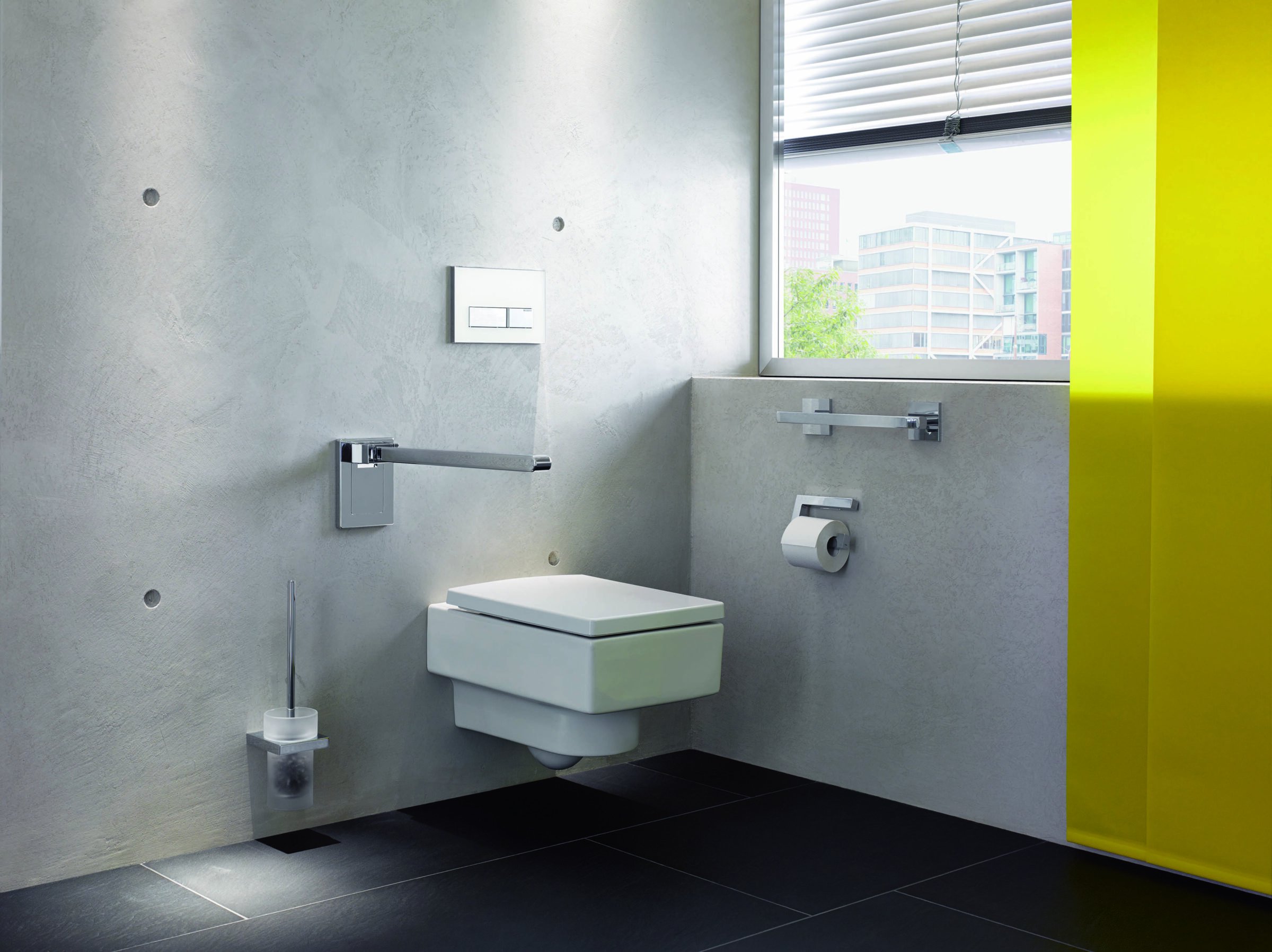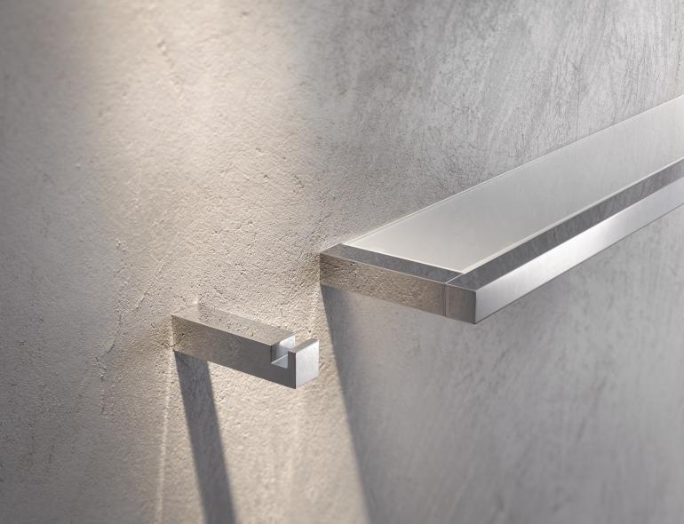 Systeem 100 is doordacht tot in het kleinste detail. Het systeem overtuigt door slimme functies, perfect bedieningscomfort, het gebruik van hoogwaardige materialen en een gereduceerde vormtaal. De losse elementen vormen in combinatie een architectonisch systeem, dat de consequente vormgeving mogelijk maakt van sanitaire ruimten, deuren en gangen geheel volgens de individuele eisen van het concept van het gebouw. De accessoires van systeem 100 zijn in twee verschillende oppervlakken verkrijgbaar. U kunt kiezen uit edel chroom of puristisch wit. De inzetstukken zijn vervaardigd van hoogwaardig, gesatineerd kristalglas.