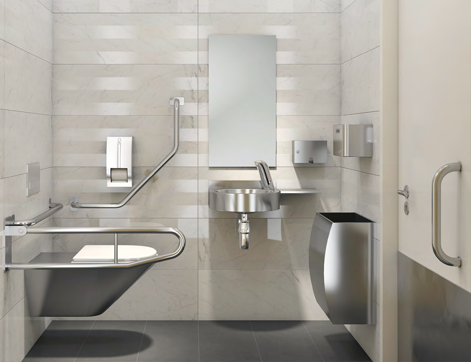 In barriërevrije sanitaire voorzieningen behoren stabiliteit en gebruiksvriendelijkheid tot de belangrijkste thema‘s. In medische instellingen, openbare toiletten of speciale voorzieningen bieden de bewegingshulpmiddelen zoals steun- en handgrepen, opklapbare douchezitjes, rugleuningen, handdouchehouders of spiegels een stevige houvast.