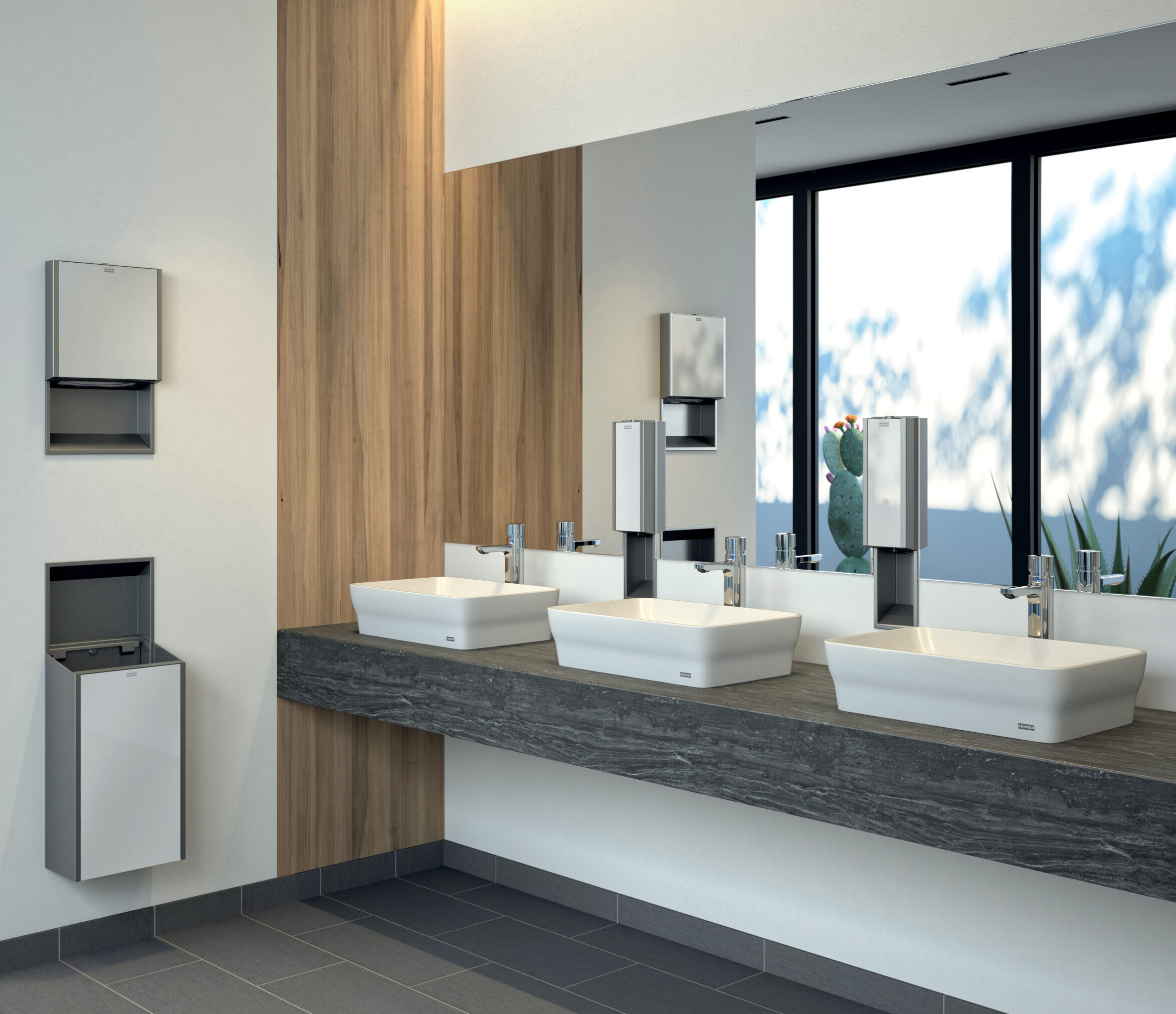 Toiletruimten in semi-openbare en openbare toepassingsgebieden, zoals hotels, restaurants, kantoren of recepties, worden vaak uitgerust met een groot aantal onderdelen van verschillende herkomst. Met EXOS. lanceert KWC een productlijn met volledig op elkaar afgestemde wastafels en accessoires.