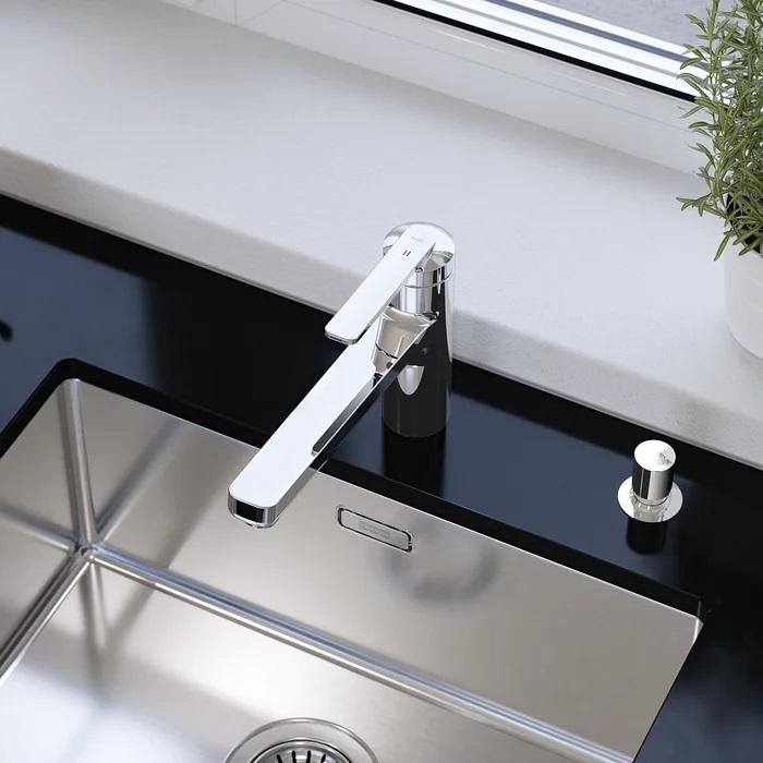 Beproefde perfectie en technologie: De nieuwe kleinere variant is ideaal voor installatie in kleine ruimtes. Bovendien valt hij op door zijn hoogwaardige uitstraling, zijn intuïtieve bediening, zijn uitgekiende ergonomie en de uittrekbare vaatdouche met drie straalsoorten. Deze eigenschappen maken de DOMO-lijn bijzonder populair…