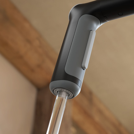 De KWC KIO kan zowel digitaal als handmatig worden bediend en beschikt over een uittrekbare sproeikop. De watertemperatuur en -hoeveelheid kunnen eenvoudig worden voorgeprogrammeerd aan de hand van drie verschillende instellingen. Daarna hoeft de consument enkel kort op de On/Off knop te drukken. De verlichte ring geeft visuele informatie over de huidige watertemperatuur of over de lopende programma’s. De leds kunnen oplichten in blauw, oranje of rood volgens de gewenste watertemperatuur. De ergonomisch geplaatste omschakelknop zorgt ervoor dat u kunt kiezen tussen een kristalheldere laminaire straal of een praktische zeefstraal.