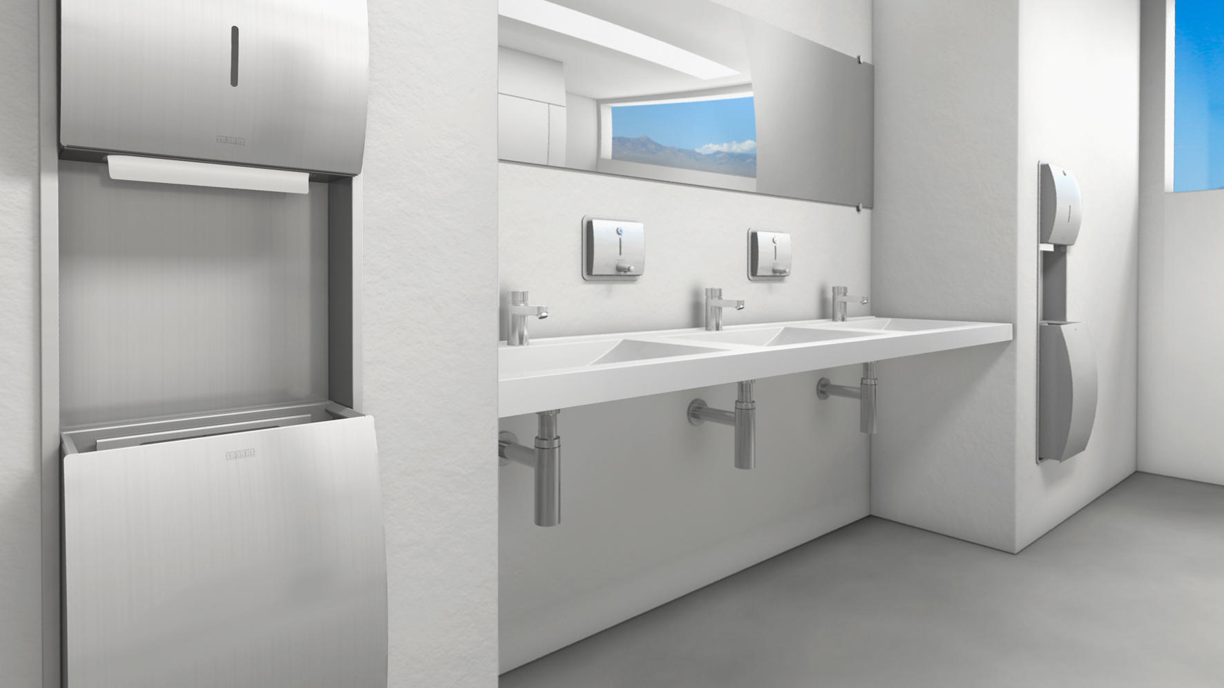 Met STRATOS-accessoires blijft de sanitaire ruimte langer schoon, omdat het frontoppervlak van deze producten is veredeld met de beproefde InoxPlus-technologie. Daarbij vertanden nanodeeltjes zich met de moleculen van het metalen oppervlak en kruipen ze dicht tegen de microscopisch kleine oneffenheden aan. De daaruit ontstane zeer fijne structuur maakt vingerafdrukken vrijwel onzichtbaar. De serie omvat producten voor op- en inbouwmontage.