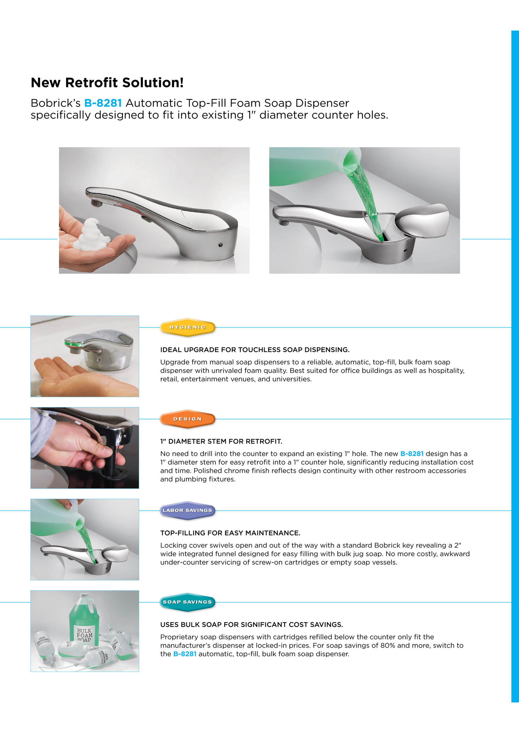 Bobrick New Retrofit Solution Automatic Top-Fill Foam Soap Dispenser B-8281