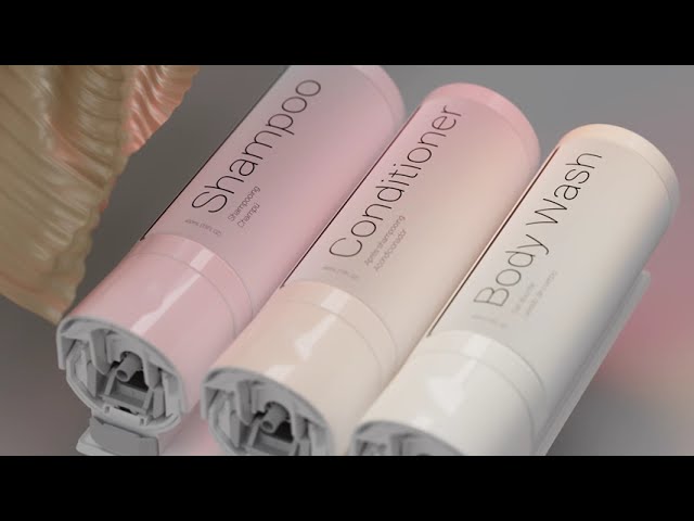 Maak uw verblijf duurzamer. H3 is een duurzamer dispensersysteem voor toiletartikelen.